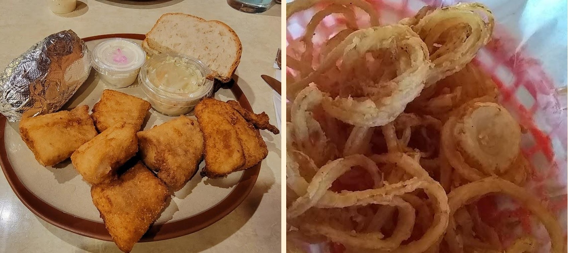 Don't miss the Hand Battered Fried Cod and the Jalapeño Burger. Try the Blueberry Pancakes on Tuesdays, too. Finish with their famous Appetizers, like Battered Onion Rings or Pizza Fries.